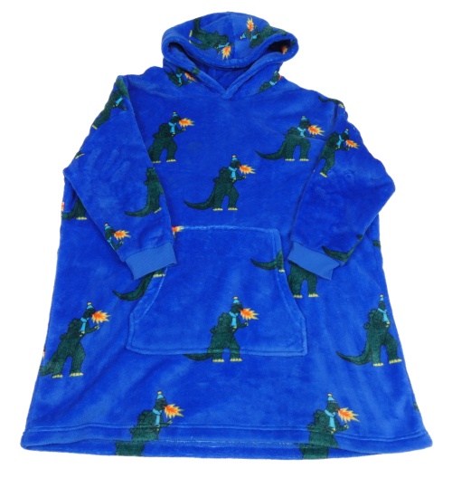 Tmavomodrá zafírová chlpatá ovesize mikina s dinosaurami a kapucňou M&S