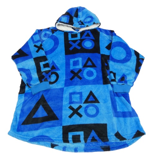 Modro-čierna chlpatá oversize mikina s logy a kapucí - PlayStation