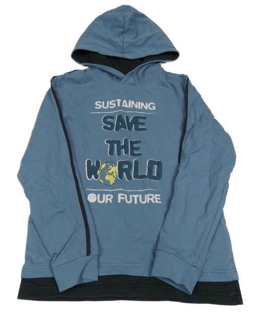 Modrošedo-čierna mikina s nápismi a zeměkoulí a kapucňou POCOPIANO
