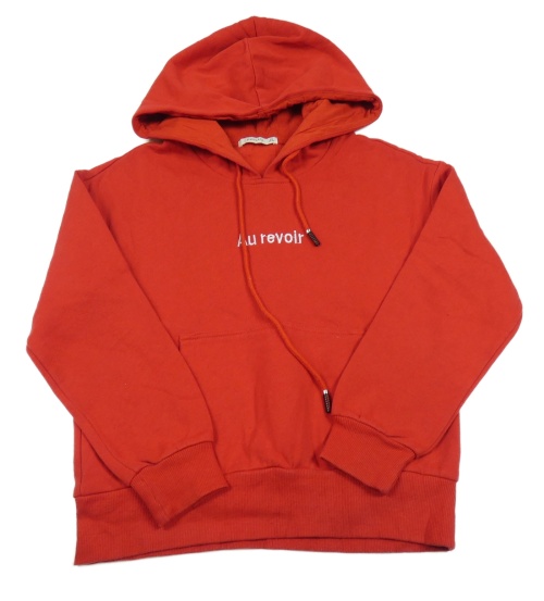 Červená mikina s nápisom a kapucňou