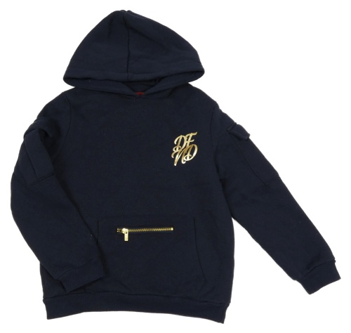 Tmavomodro-zlatá zateplená mikina s potlačou a kapucí DFND