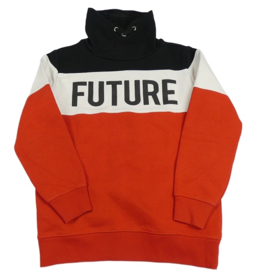 Červeno-bielo-čierna mikina s nápisom a komínovým golierom