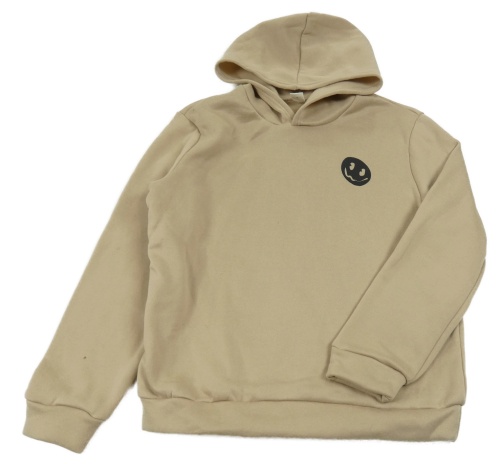 Béžová mikina s nápisem na zádech a kapucňou shein