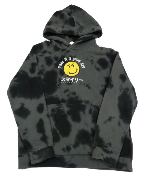 Tmavošedo-čierna batikovaná mikina so smajlíkom a nápismi a vreckom a kapucňou H&M