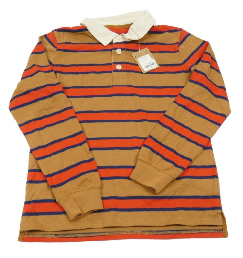 Nové - hnedo-červeno-tmavomodrá pruhovaná mikina s golierikom MINI BODEN