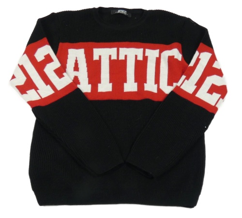 Čierno-červený vlnený sveter s nápismi Attic21