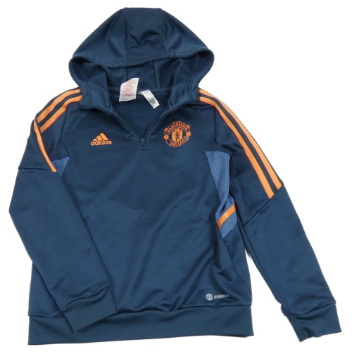 Tmavomodro-oranžová funkčná futbalová mikina Manchester United a kapucňou Adidas