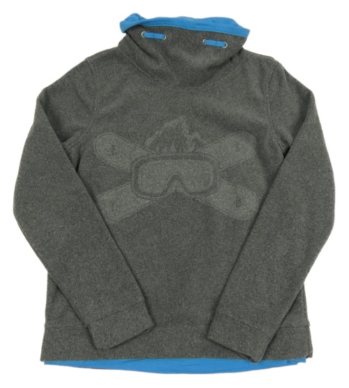 Sivo-modrá melírovaná fleecová mikina s lyžiarskými okuliarmi a snowboardy a komínovým golierom POCOPIANO