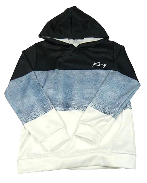 Čierno-modro-biela mikina s nápisom a kapucňou