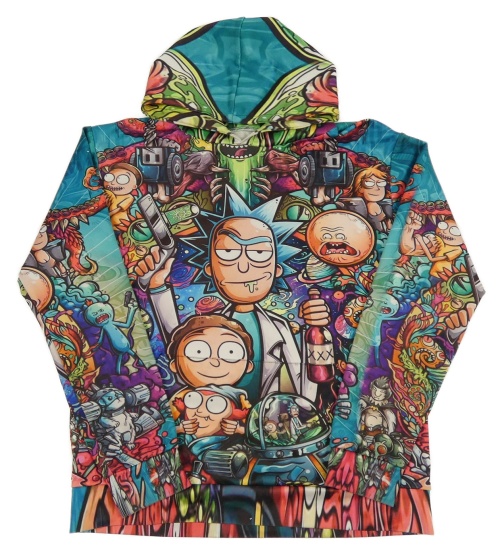 Zeleno-farebná mikina s postavičkami a kapucňou