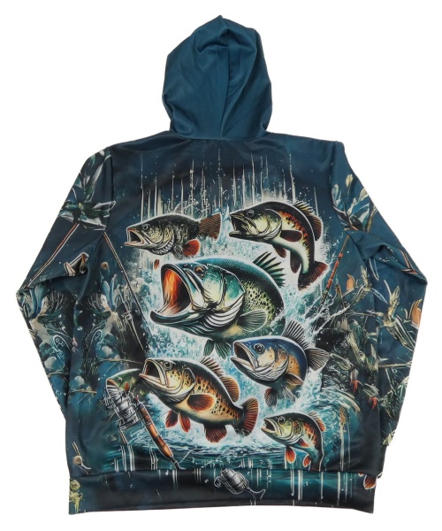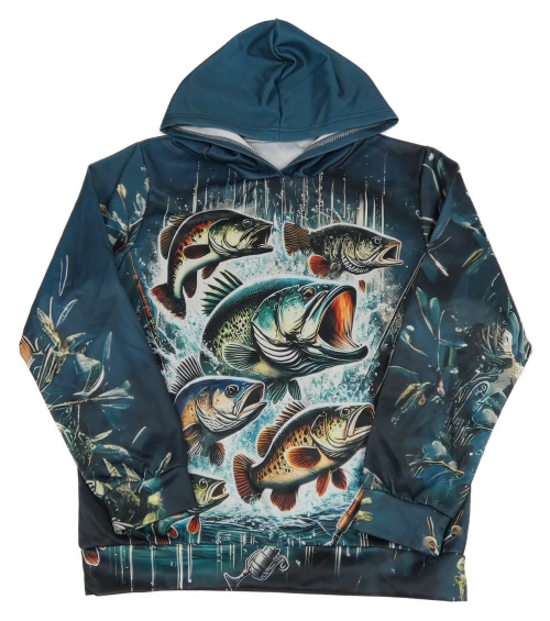 Tmavozelená mikina s rybami a kapucňou