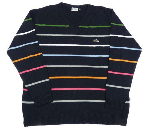 Čierno-farebný pruhovaný sveter s logom Lacoste