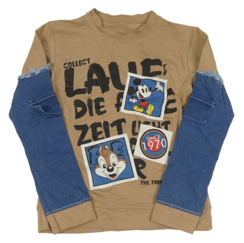 Béžovo-modrá ľahká mikina s nápisom a obrázkami