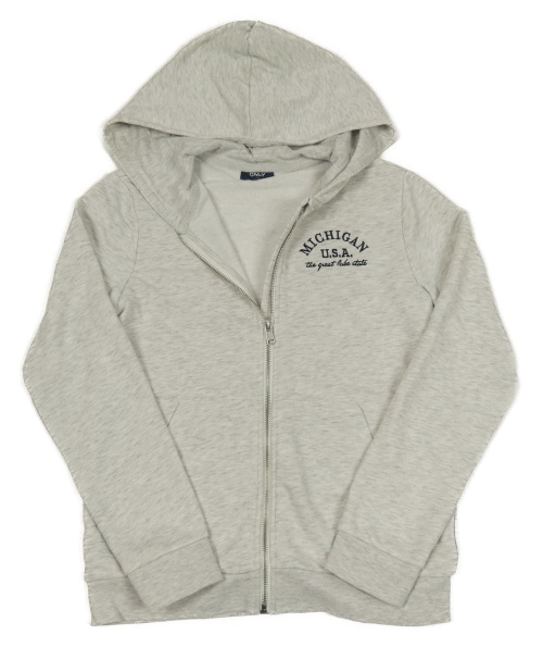 Svetlosivá melírovaná prepínaci mikina s nápisom a kapucňou Only