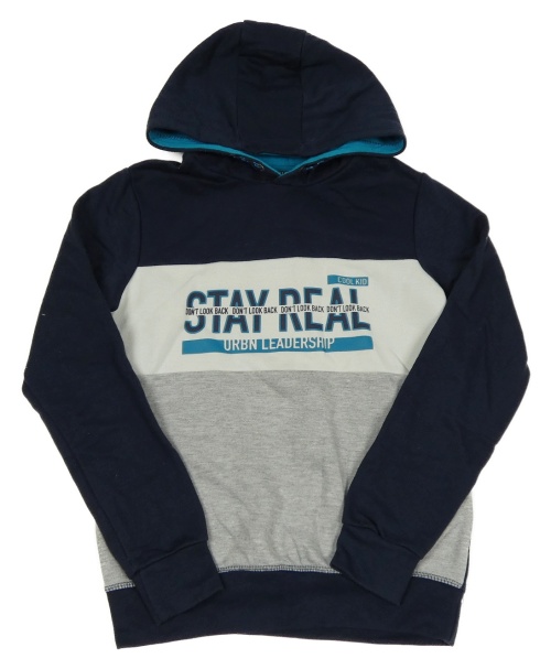 Tmavomodro-sivo-biela mikina s nápismi a kapucňou Y.F.K.