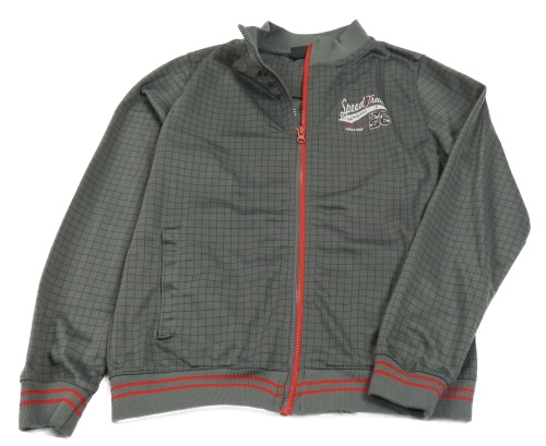 Tmavošedo-čierna kockovaná športová prepínaci mikina s nápisom