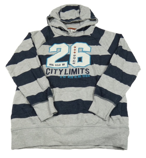 Sivo-tmavomodrá pruhovaná mikina s číslom a kapucňou Yigga