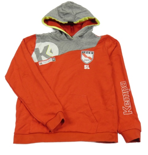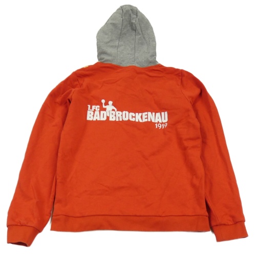Červeno-šedá mikian s nápisom a kapucňou