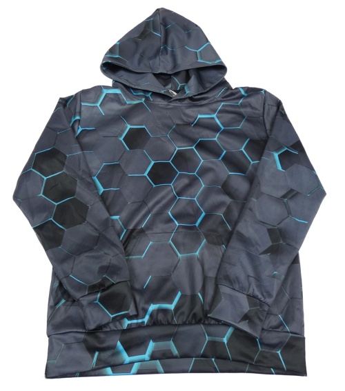 Tmavošedo-čierno-azurová vzorovaná športová mikina s vreckom a kapucňou