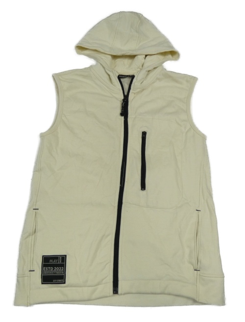 Svetlobéžová tepláková prepínaci vesta s nášivkou a kapucňou
