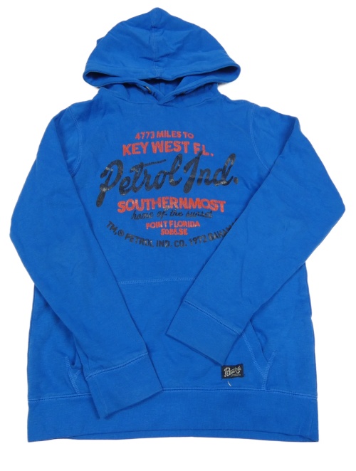 Tmavomodrá mikina s nápismi a kapucňou