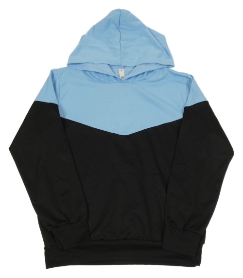 Čierno-svetlomodrá mikina s klokankou a kapucňou