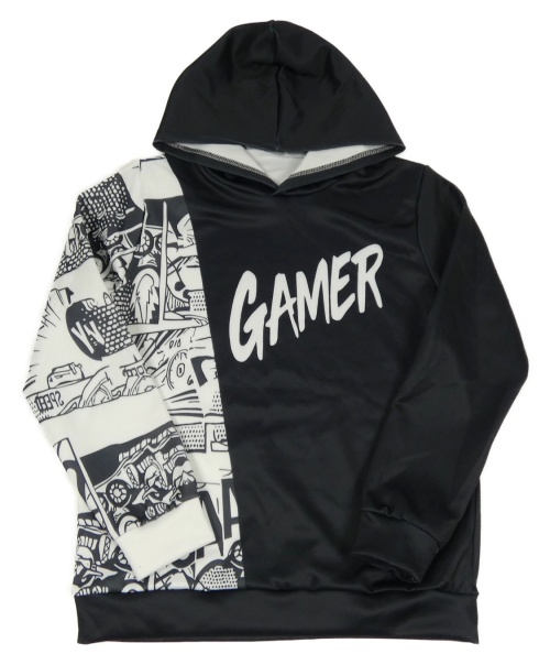 Čierno-biela mikina s nápisom a kapucňou