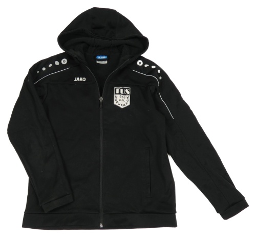 Čierna športová prepínaci mikina s nápisom a kapucňou jako