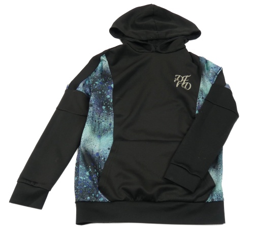 Čierna športová mikina s modrým vzorovaným pruhom a kapucňou DFND