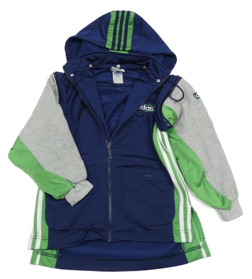 Tmavomodro-zeleno-šedá propínací mkina s kapucňou Adidas