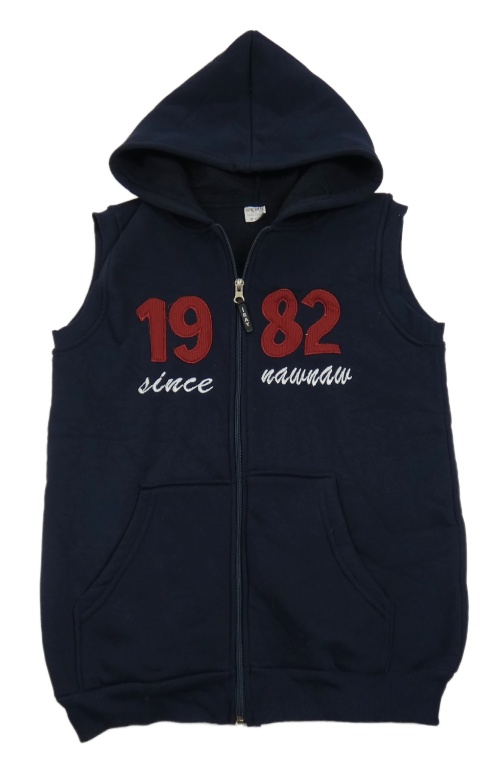 Tmavomodrá tepláková prepínaci vesta s číslom a kapucňou