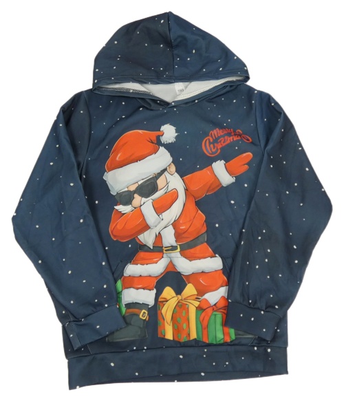 Tmavomodrá ľahká mikina so Santou a kapucňou
