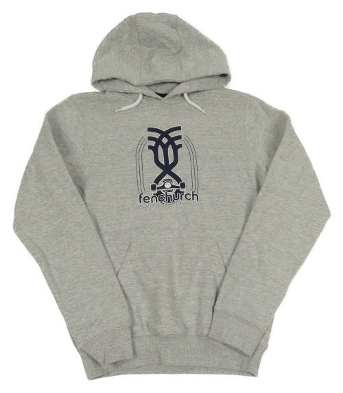 Sivá melírovaná tepláková mikina s potlačou a logom a vreckom a kapucňou fenchurch