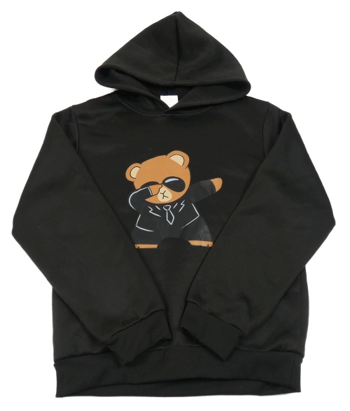 Čierna mikina s medvěďom a kapucňou