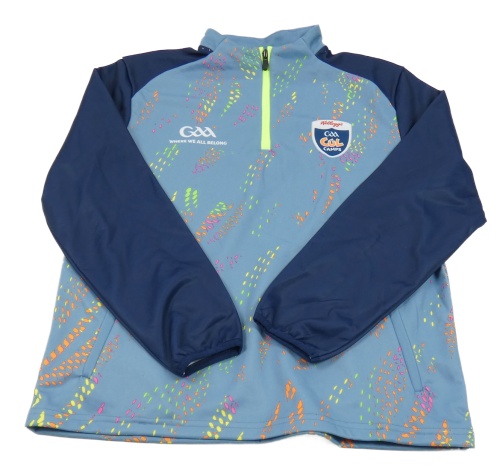Modro-tmavomodrá športová mikina s fľakmi a nápisom Masita