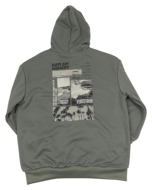 Tmavosivá športová mikina s vreckom a mořem a palmami a nápismi a kapucňou SHEIN