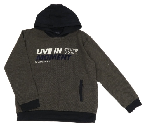 Hnedá vzorovaná mikina s nápisom a kapucňou