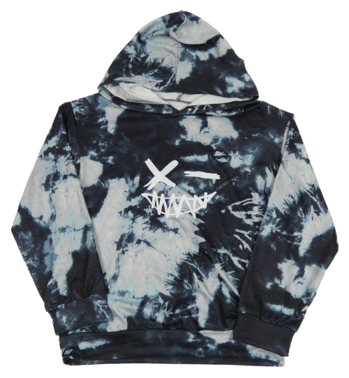 Čierno-sivá batikovná mikina so smajlíkom a kapucňou