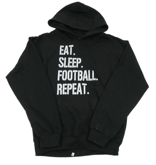 Čierna tepláková mikina s nápismi a vreckom a kapucňou