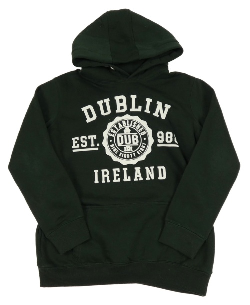 Tmavozelená mikina s nápismi a kapucňou