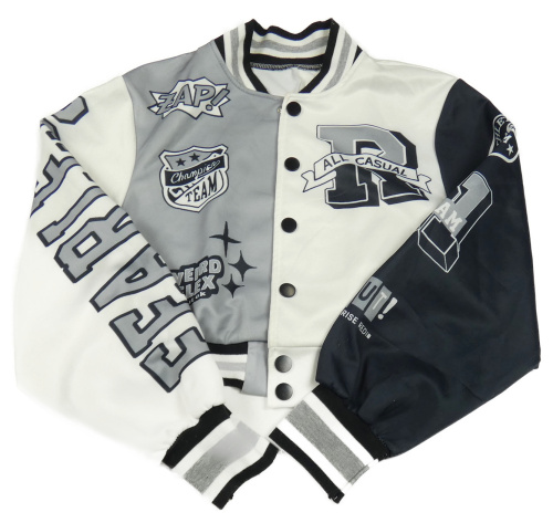Bielo-sivo-čierna športová baseballová crop mikina s potlačou