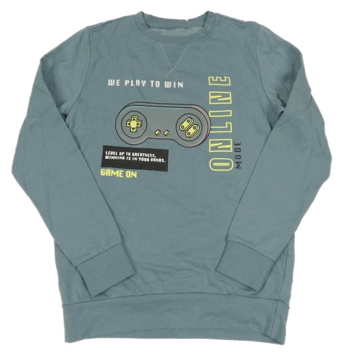 Šedomodrá mikina s nápismi a ovladačem