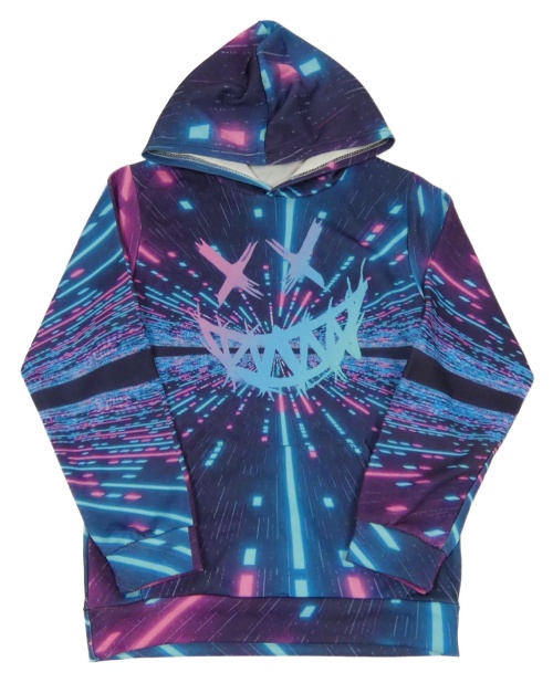 Tmavomodro-ružovo-modrá mikina so smajlíkom a kapucňou