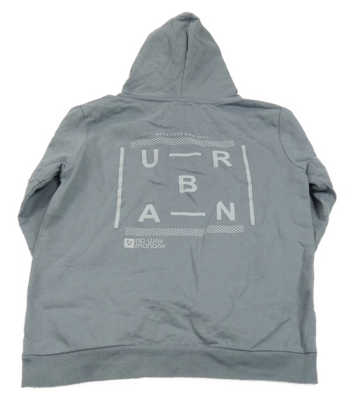 Modrošedá mikina s nápisom a kapucňou