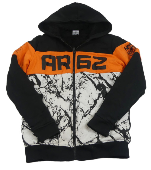 Čierno-bielo-oranžová zateplená prepínaci mikina so vzorom a kapucňou Chapter Young