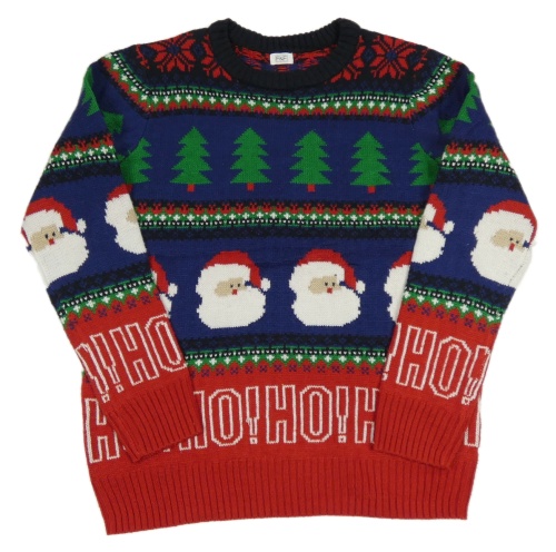Tmavomodro-zeleno-červený vzorovaný sveter so stromky a Santou F&F