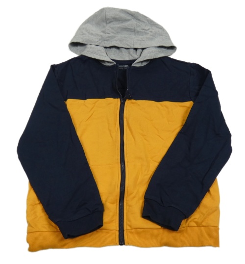 Tmavomodro-žltá prepínaci mikina s kapucňou