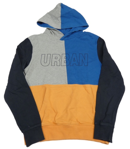 Sivo-modro-oranžovo-čierna mikina s nápisom a vreckom a kapucňou TOM TAILOR