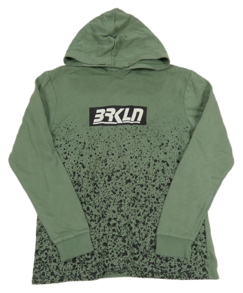 Zeleno-čierna mikina s fleky a nápisom a kapucňou H&M