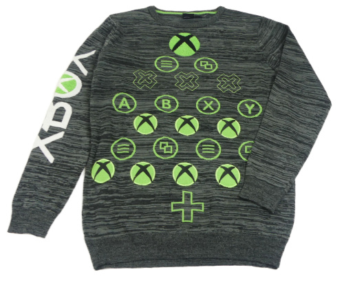 Šedo-zelený melírovaný vzorovaný svetr - XBOX